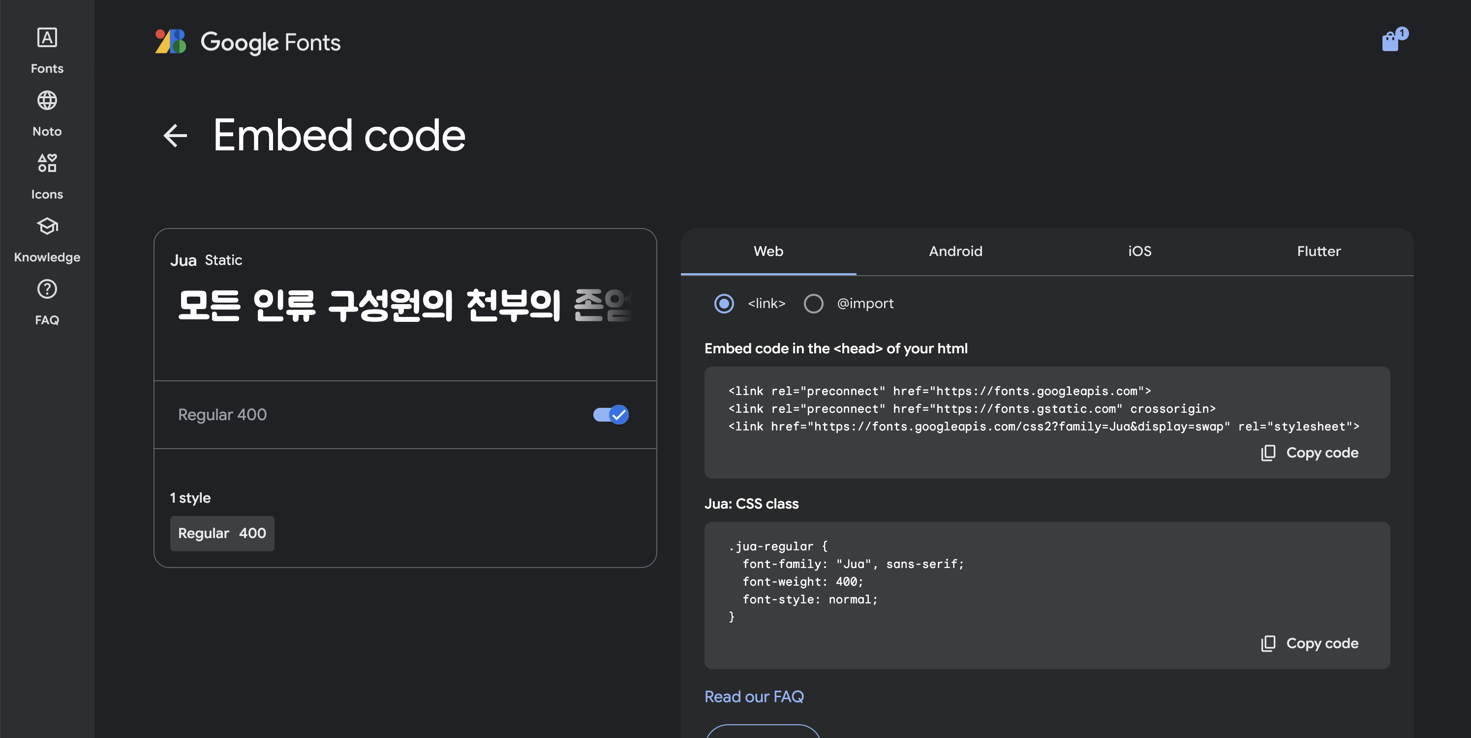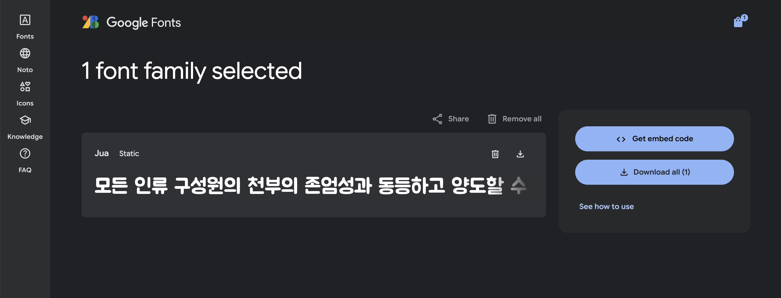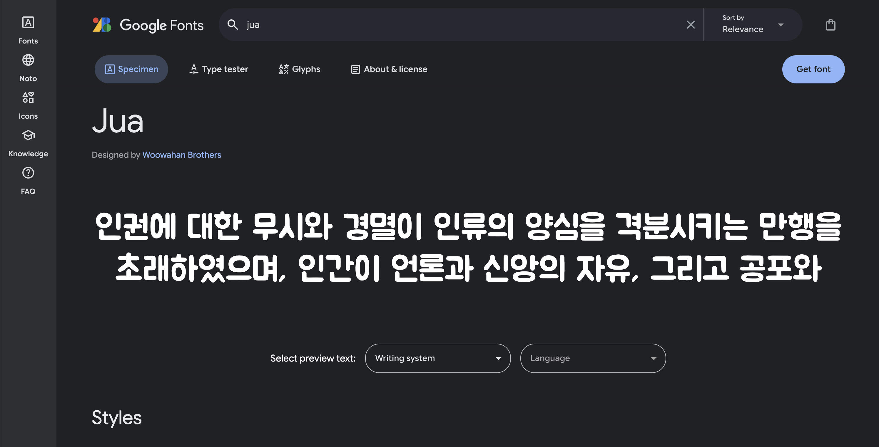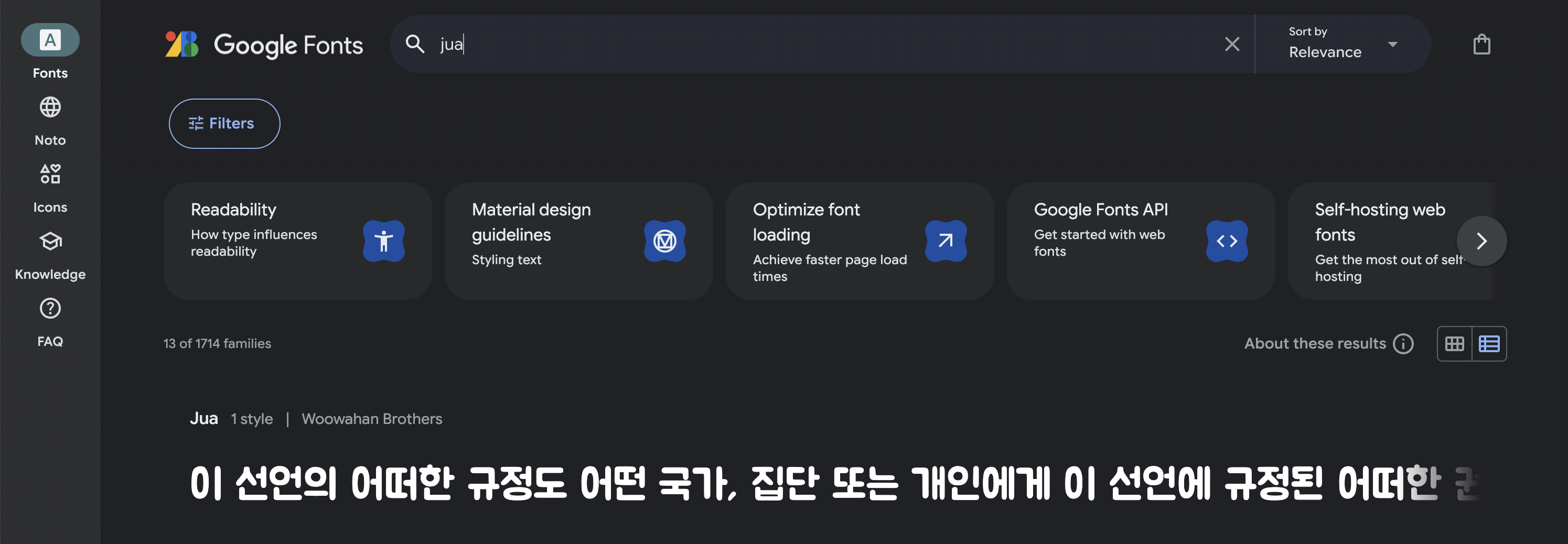 2. 원하는 폰트 검색 (저는 Jua 폰트로 하겠습니다!)