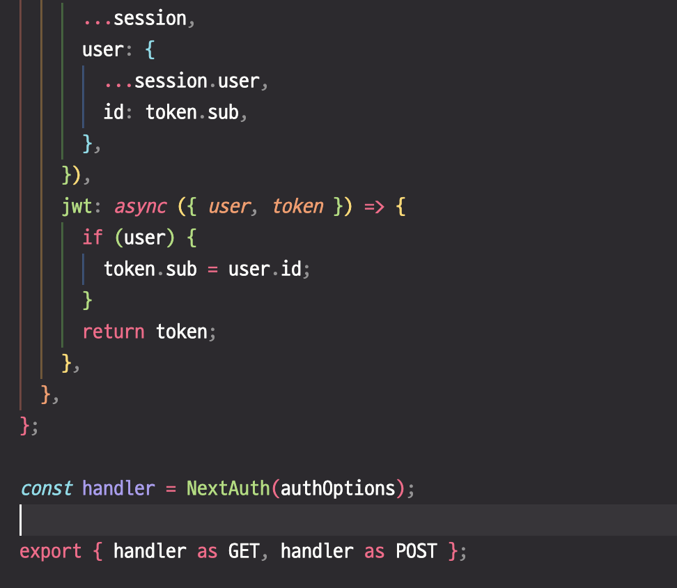 아래 코드를 보다시피 authOptions를 따로 만들어줘서 NextAuth의 인수로 넣어주고도 있고 export해서 내보내주고도 있다.