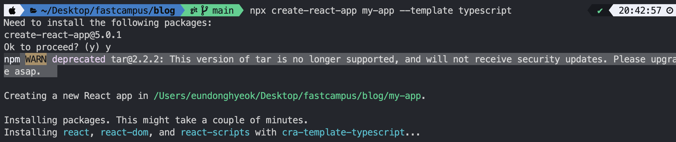 npm WARN deprecated tar@2.2.2: This version of tar is no longer supported, and will not receive security updates. Please upgrade asap. 이라는 오류가 생겼다