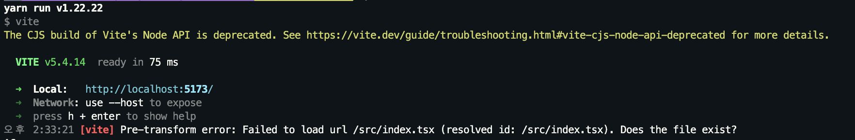 Vite 마이그레이션 설정을 모두 끝내고 개발 서버를 열어보니 아래와 같은 오류를 만났다.