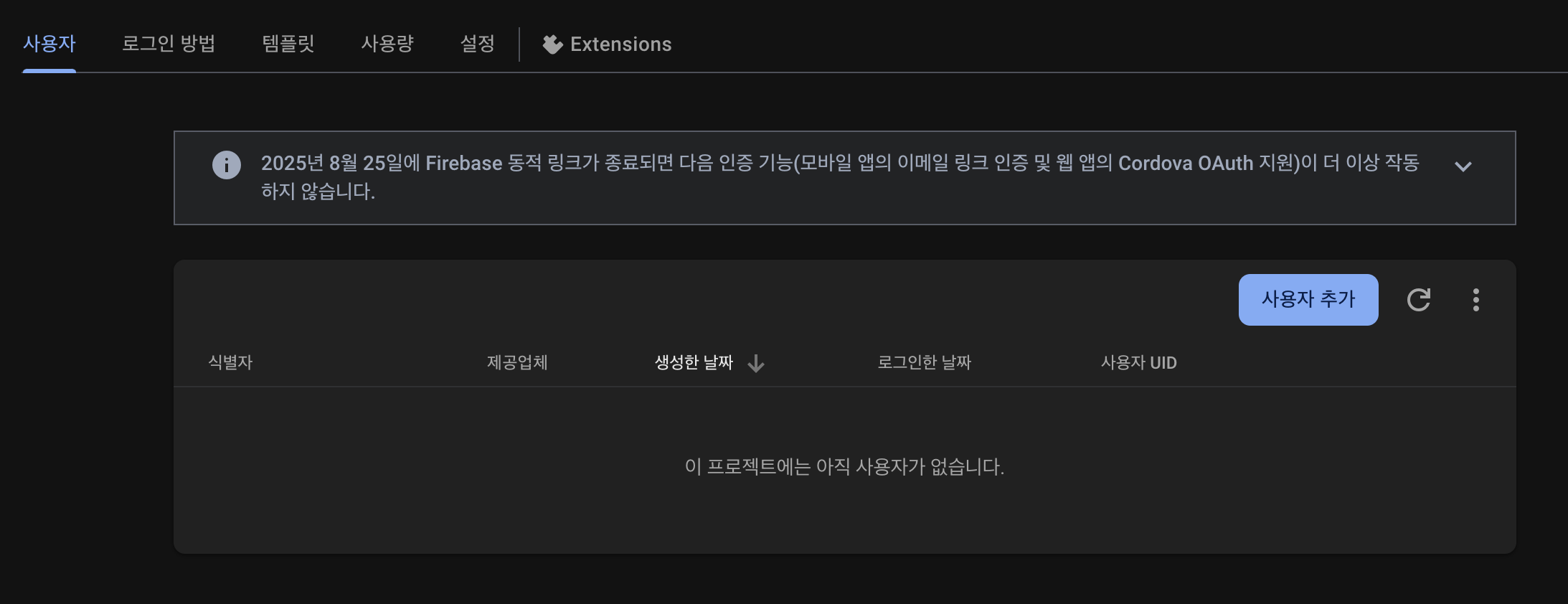 - Firebase Authenticaiton: 쉽게 사용자 인증을 구현할 수 있도록 돕는 Firebase 서비스