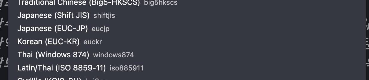 3. 아래로 내려보면 Korean (EUC-KR)이 있는데 선택 하면