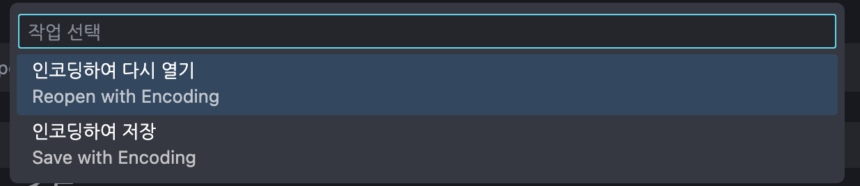 2. 클릭하면 상단에 이런 작업 선택이 나오는데 여기서 -> 인코딩하여 다시 열기를 클릭