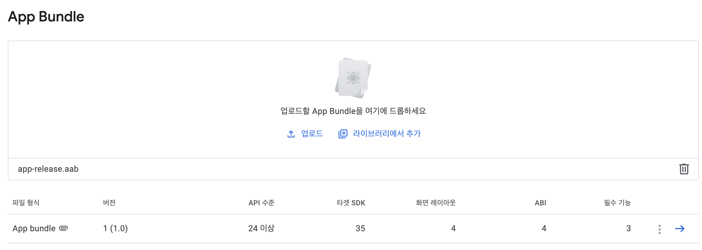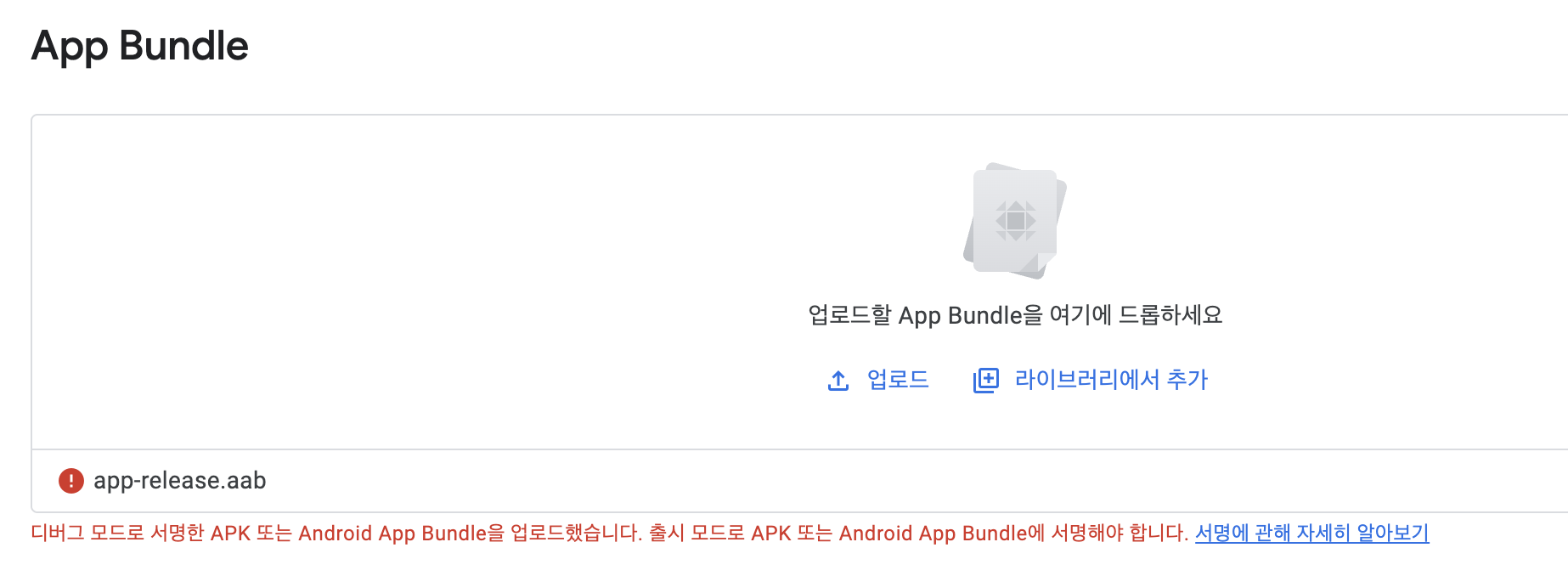 Google Play Console에서 내부 테스트 배포를 자동화 하려면 최초에 한 번은 수동 배포를 해야한다고 해서 빌드한 결과물을 업로드 했는데 위와 같은 오류가 발생했다.