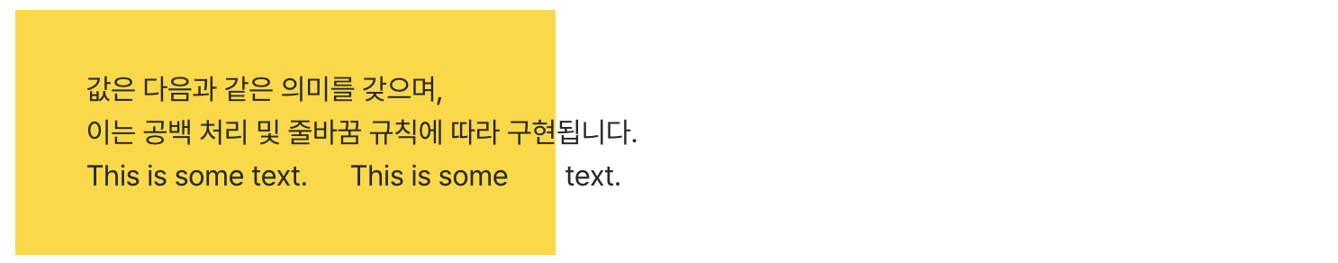 - white-space 속성은 요소 내부의 공백 문자(Whitespace) 처리와 줄바꿈 규칙을 지정합니다.