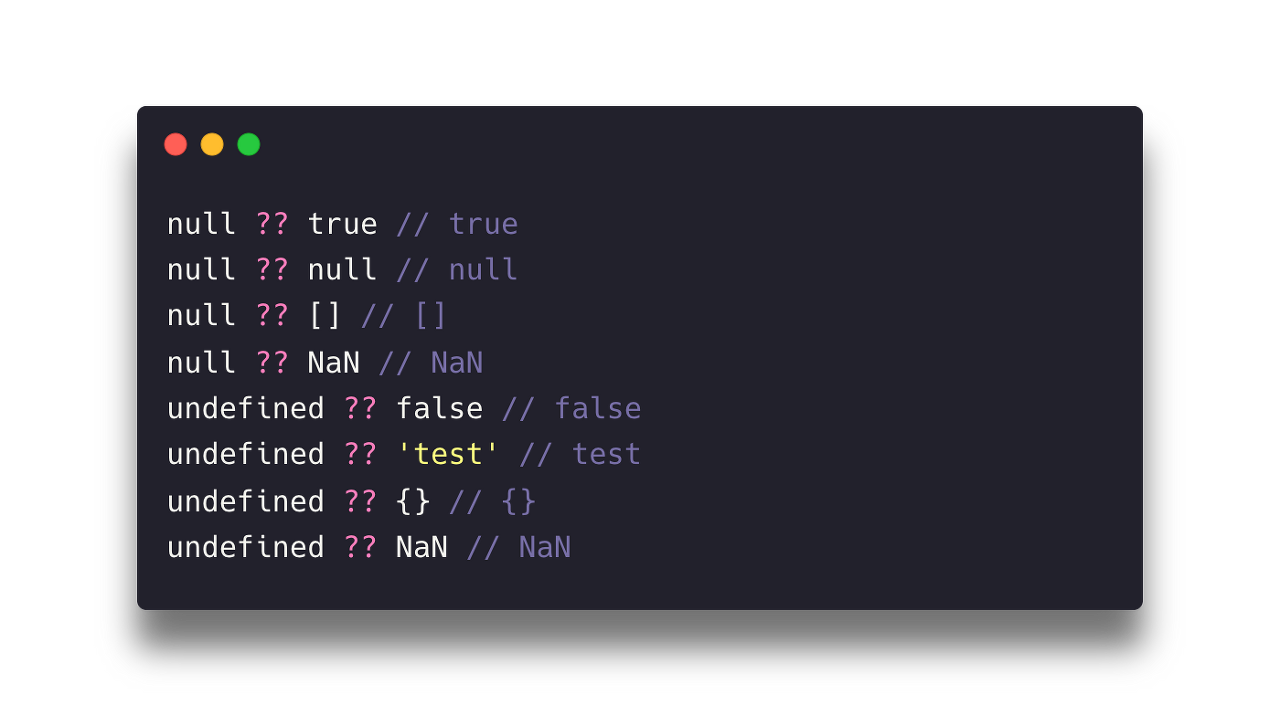 앞에 오는 값이 null 또는 undefined이면 뒤에오는 값을, 아니면 null 또는 undefined을 반환