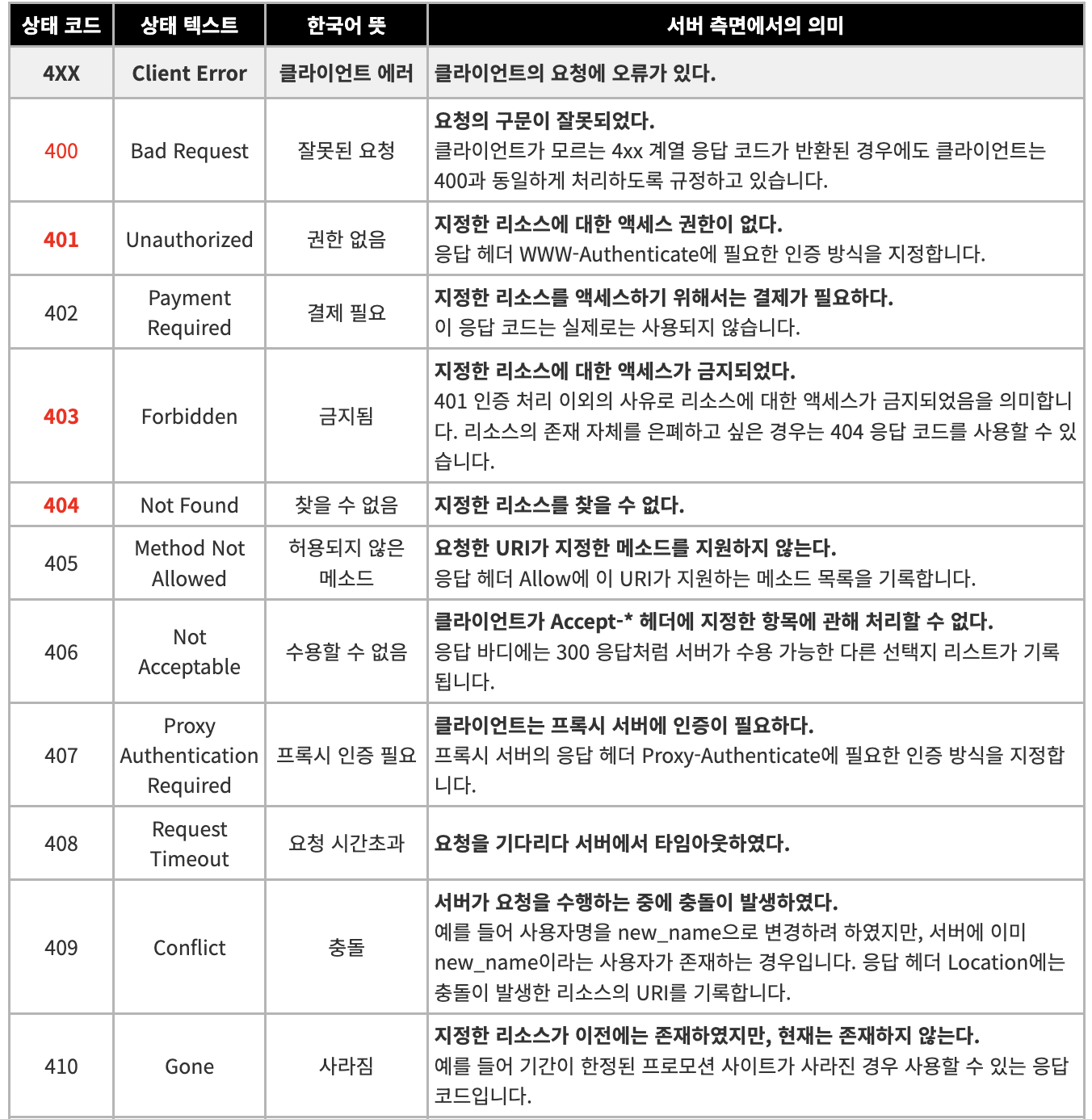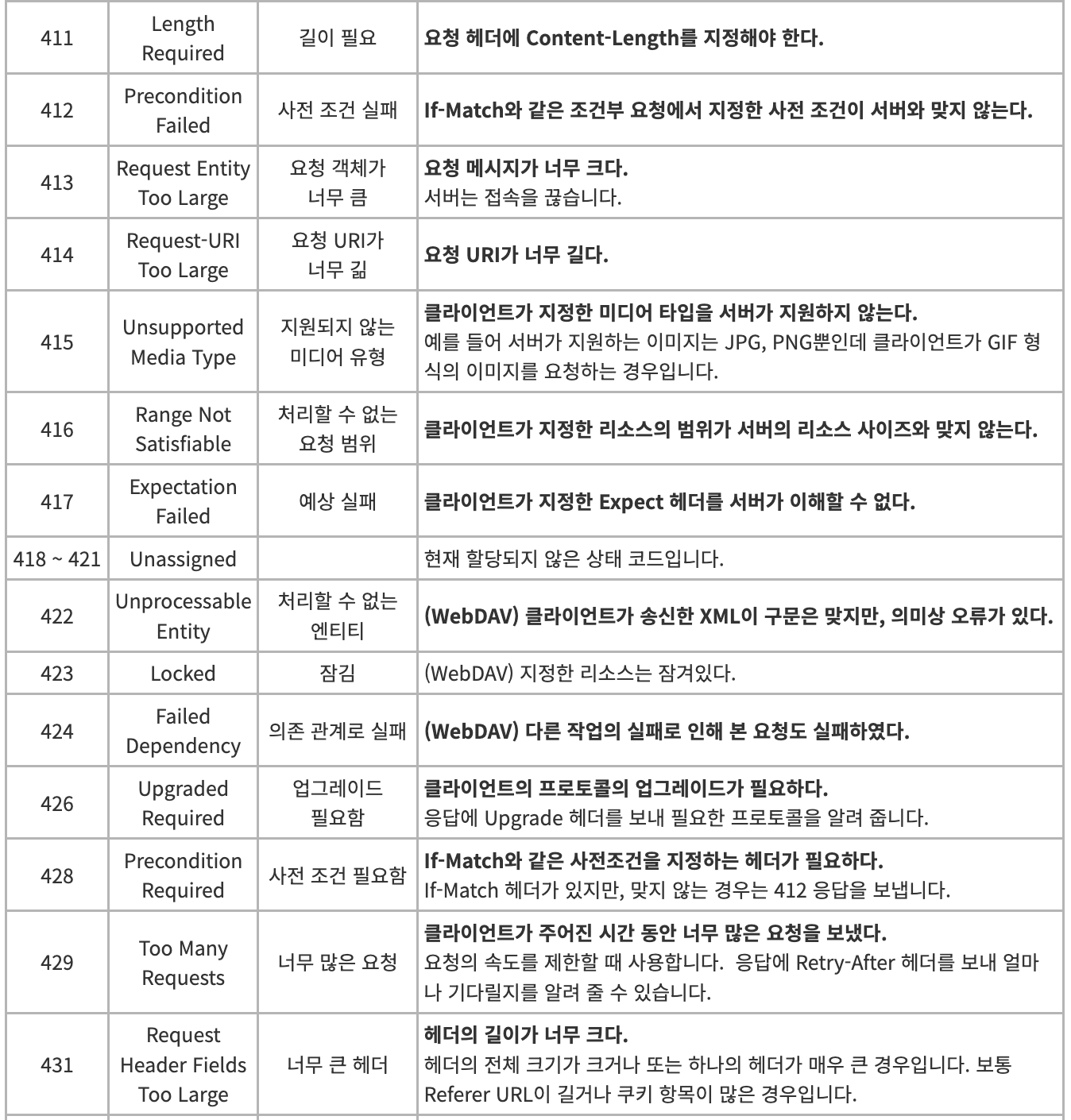 - 없는 페이지를 요청하는 등 클라이언트의 요청 메시지 내용이 잘못된 경우를 의미합니다.