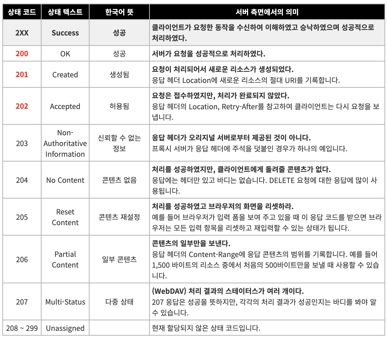 - 클라이언트의 요청이 서버에서 성공적으로 처리되었다는 의미입니다.
