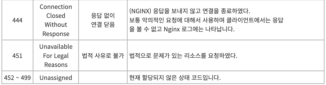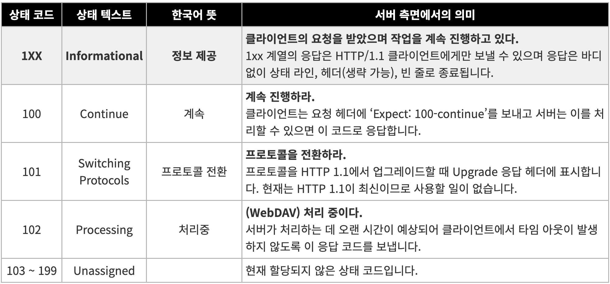 - 임시 응답으로 현재 클라이언트의 요청까지는 처리되었으니 계속 진행하라는 의미입니다. HTTP 1.1 버전부터 추가되었습니다.