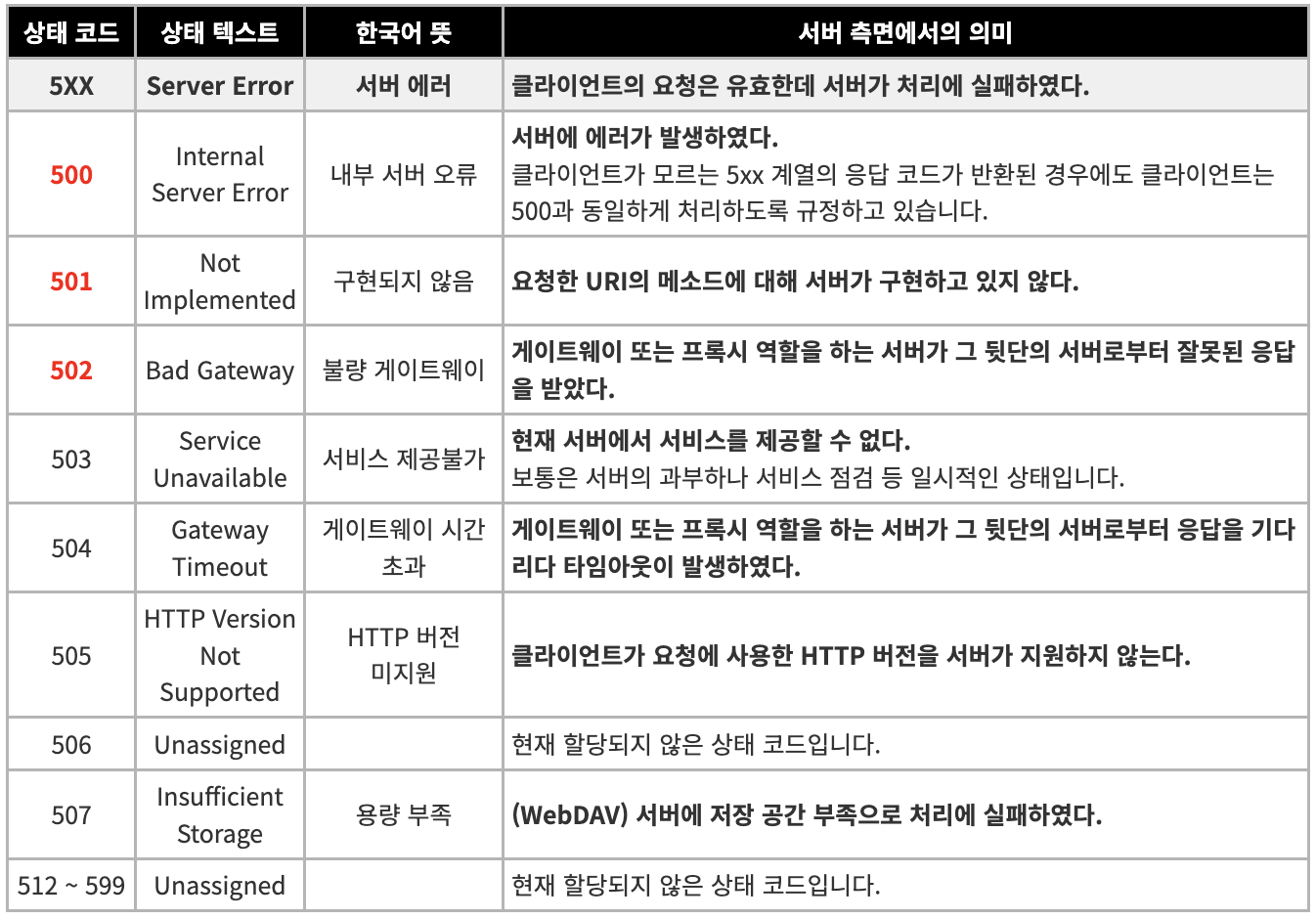 - 서버 사정으로 메시지 처리에 문제가 발생한 경우입니다. 서버의 부하, DB 처리 과정 오류, 서버에서 익셉션이 발생하는 경우를 의미합니다.