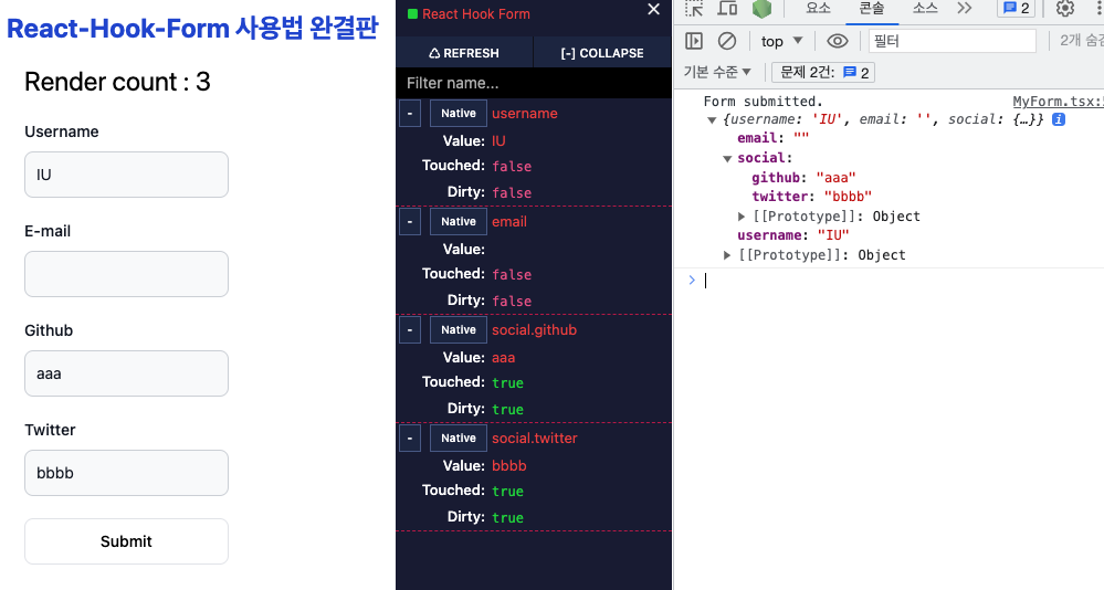 [React Hook Form] React Hook Form 공부 - 7 (FormValues 항목에 중첩된 객체가 있는 경우) [7/25 study]Frontend/React2024. 7. 25. 04:28