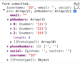 위와 같이 phNumbers 항목을 객체의 배열로 지정했고, defaultValues 안에는 한개만 명시했습니다.