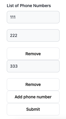 UI상에서 가변적으로 입력 항목을 늘리고 줄일 수 있는데요. phNumbers라는 항목으로 예제를 만들어 보겠습니다.